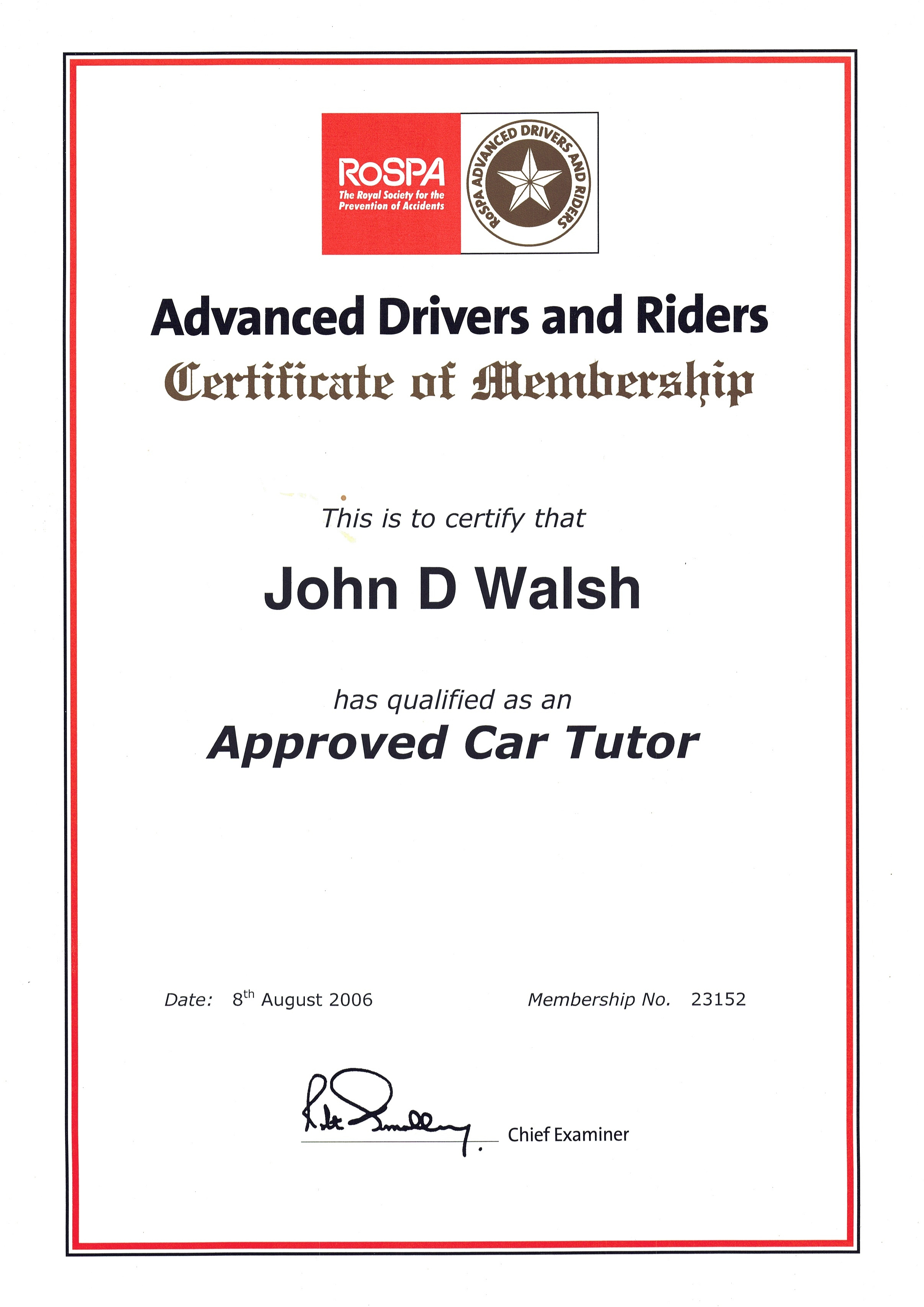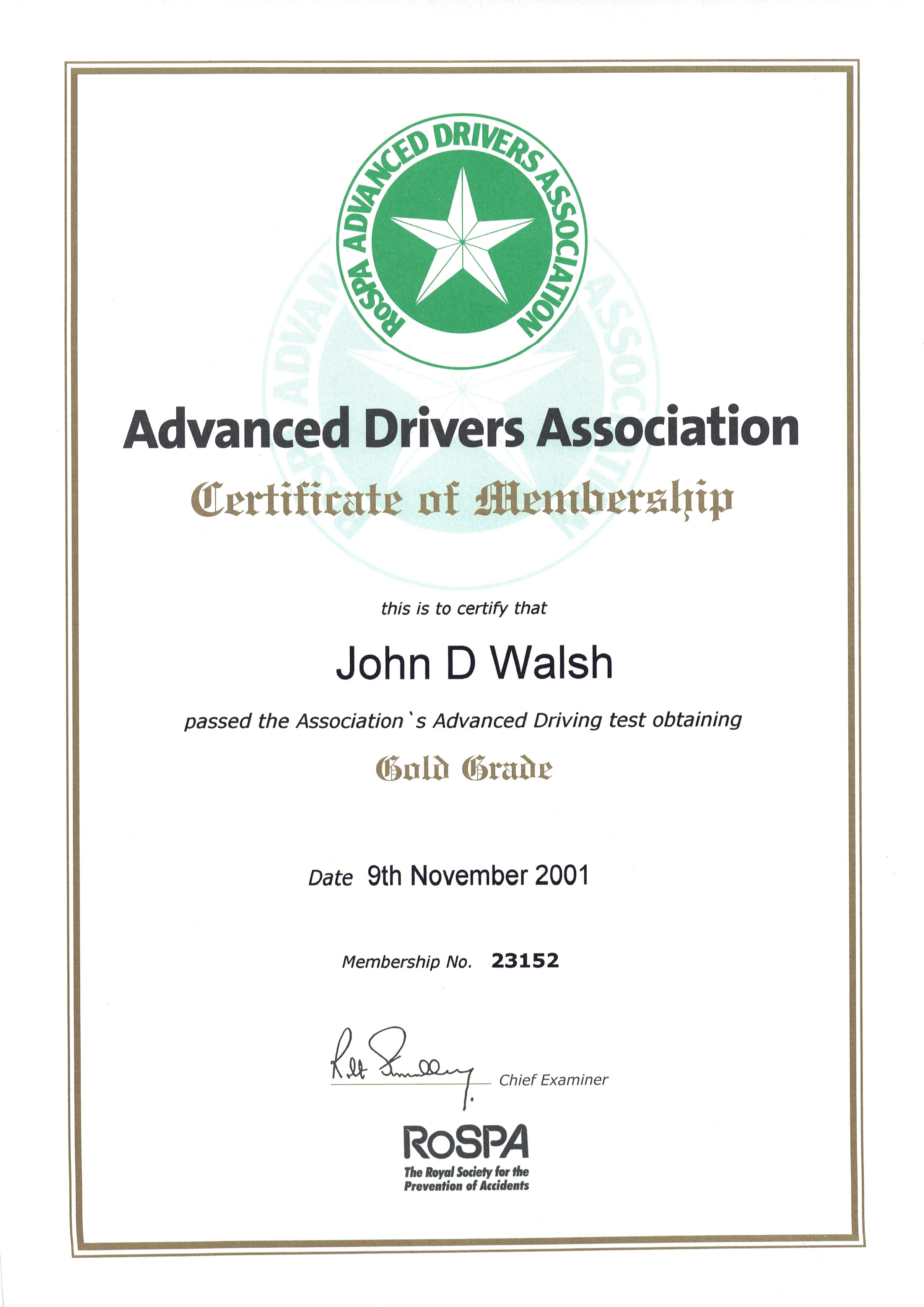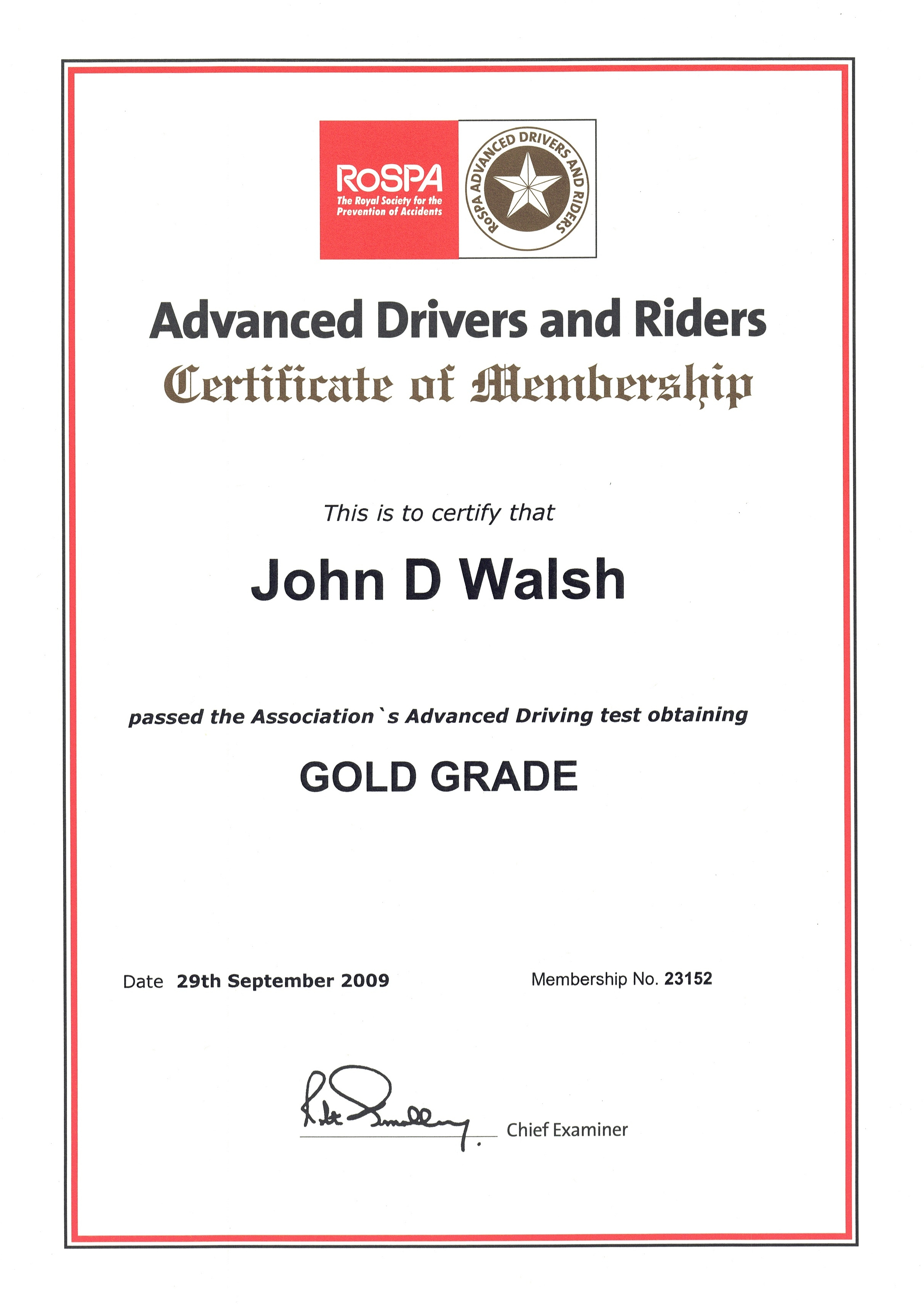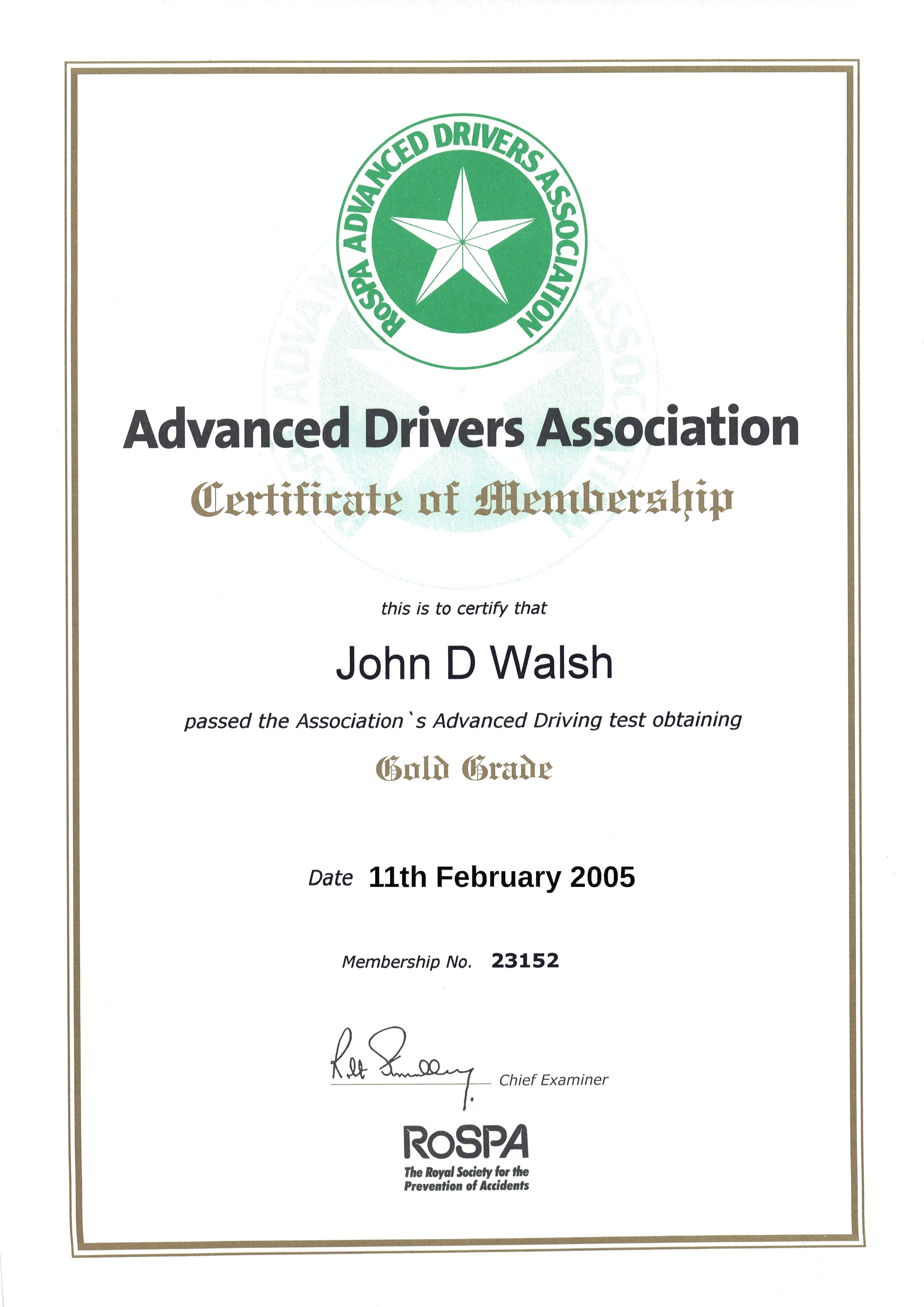 Before I left the UK for the USA, I passed the advanced drivers test at Gold level, 3 times.